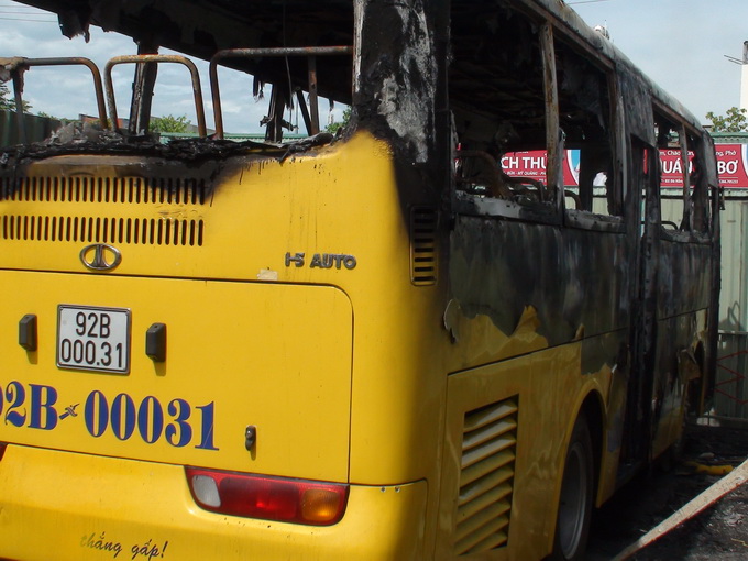 xe buýt cháy rụi ở đà nẵng