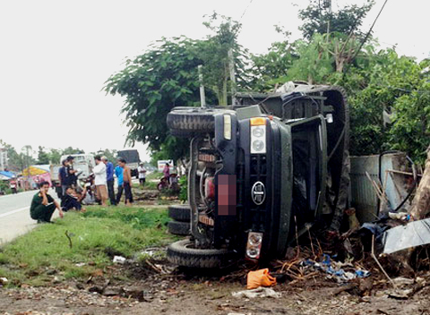 Trời mưa, ôtô chở 20 quân nhân của Sư đoàn Bộ binh 330 (Quân khu 9) lật nhào, trượt dài rồi đâm sập đoạn rào bê tông của nhà dân khiến một người thiệt mạng, nhiều nạn nhân nguy kịch.